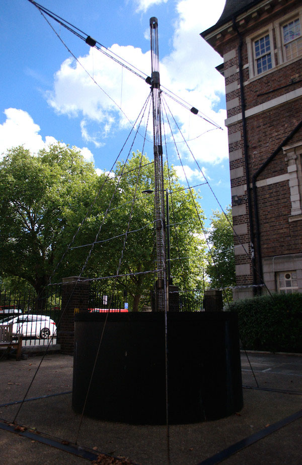 For the mast design measurements were chosen from documentation of convict hulks and ships used for convict journeys to Australia in 19th century. Convict hulks were mainly stationary and no longer suitable for travel, however ships used for convict journeys were usually regular merchant ships. The scaled down proportions used for the sculpture are taken from an archive documentation of a mast and yard size guide for merchant ships.
